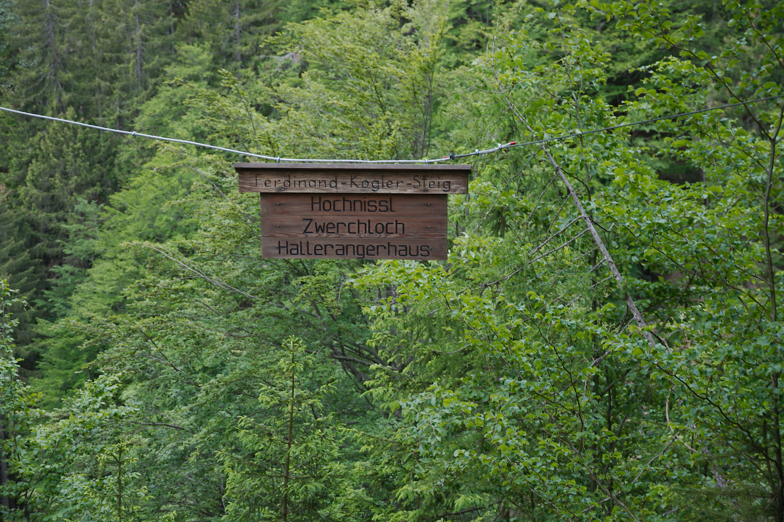 Die Tour startet am Parkplatz Karwendelrast und führt über den Ferdinand Kogler Steig ins Zwerchloch und dort zur Katzenleiter.